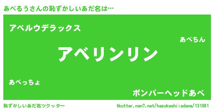 | 意味不明あだ名 | 『とにかく怪しいあべるう』 |