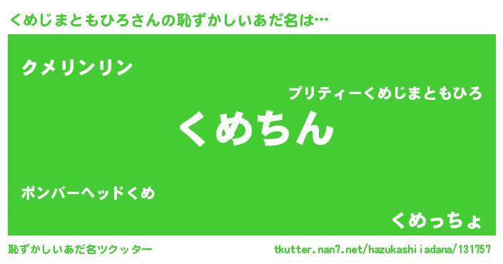 | ヘコむあだ名 | 『くめじまともひろ(小並感)』『くめを』 |