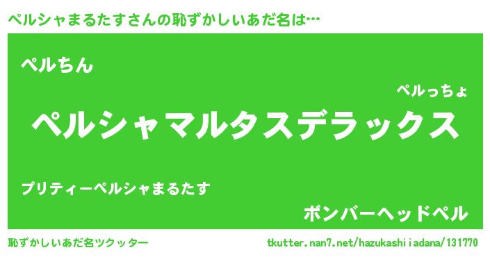 | 男性向けラノベタイトル風あだ名 | 『Re:ペルシャまるたすから始める異世界生活』 |