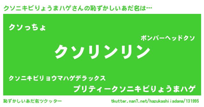 | 男性向けラノベタイトル風あだ名 | 『クソニキビりょうまハゲの嫁は女の子じゃないと思った?』 |