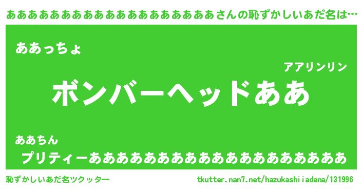 男性向けラノベタイトル風あだ名 | 『ノーゲーム・ノーアアアアアアアアアアアアアアアアアアア』 |