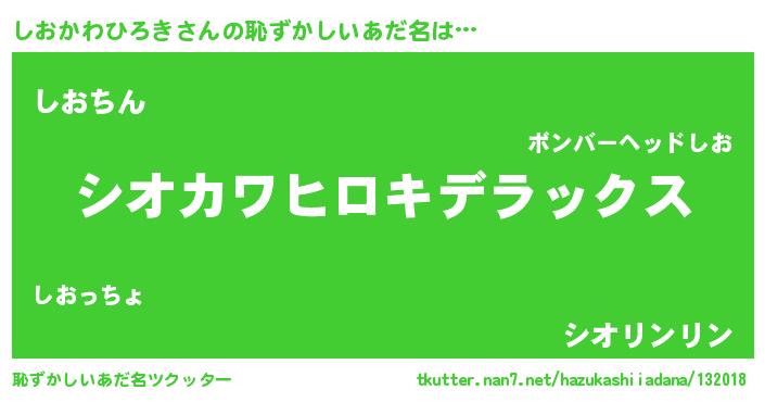| ヘコむあだ名 | 『しおかわひろき(笑)』『しお太郎』 |