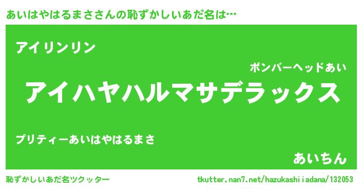 | ヘコむあだ名 | 『あい太郎』『あいはやはるまさ(笑)』 |