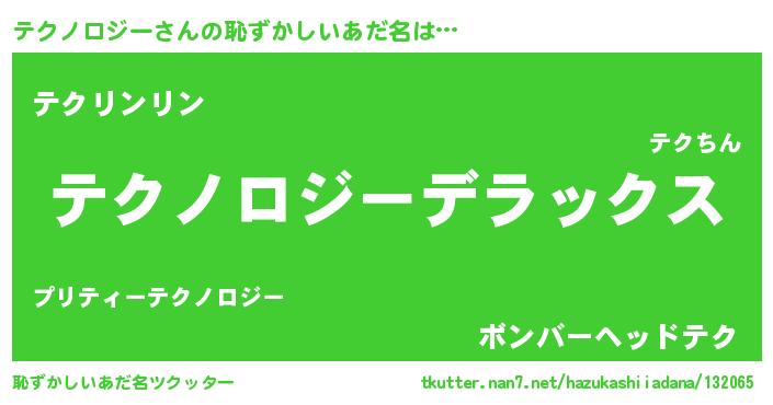 | 男性向けラノベタイトル風あだ名 | 『Re:テクノロジーから始める異世界生活』 |