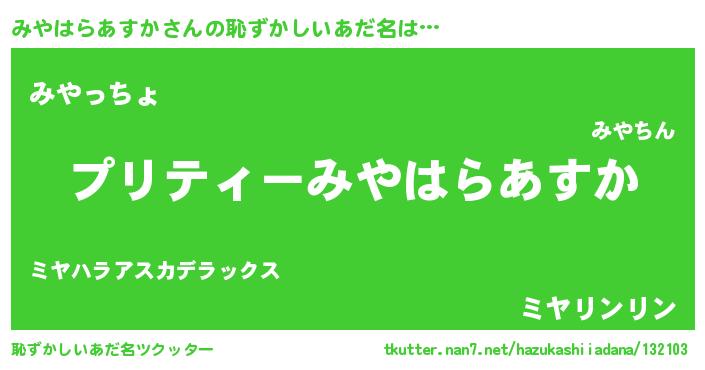 | 欧米人風あだ名 | 『マイケルみやはらあすか』 |