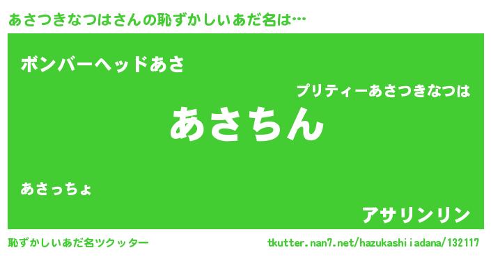 | 意味不明あだ名 | 『永久保存あさつきなつは』 |