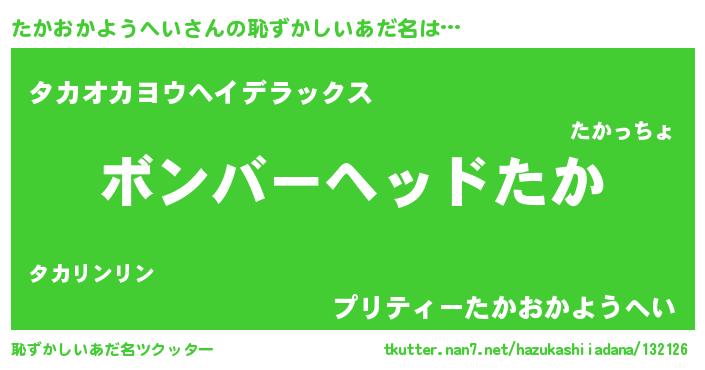 | 意味不明あだ名 | 『眠気覚ましガムたかおかようへい味』 |