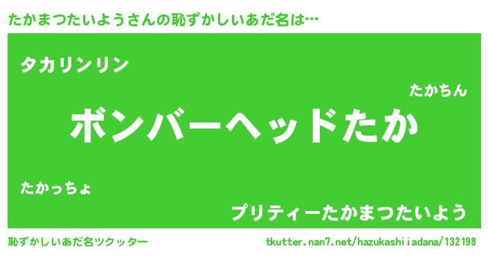 | 男性向けラノベタイトル風あだ名 | 『タカマツタイヨウスレイヤー』 |