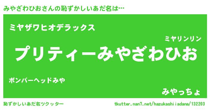 | ヒーロー風カッコイイあだ名 | 『スーパーミヤザワヒオ』『暗黒騎士ミヤ』 |