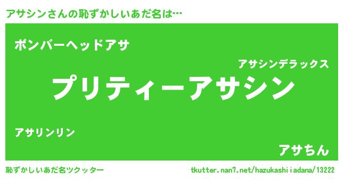| ヘコむあだ名 | 『アサもー』『アサシン(小並感)』 |