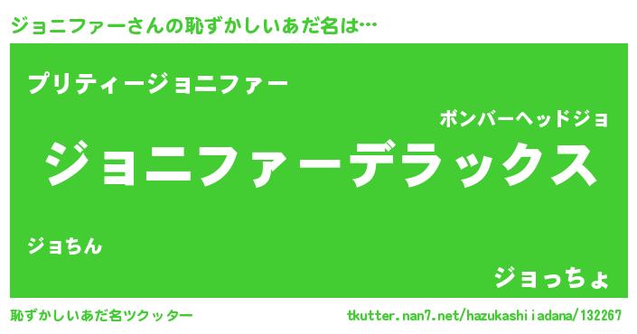 | 男性向けラノベタイトル風あだ名 | 『Re:ジョニファーから始める異世界生活』 |
