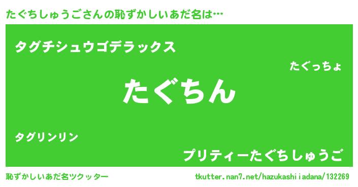 | ヘコむあだ名 | 『たぐちしゅうご(小並感)』『たぐにゅー』 |