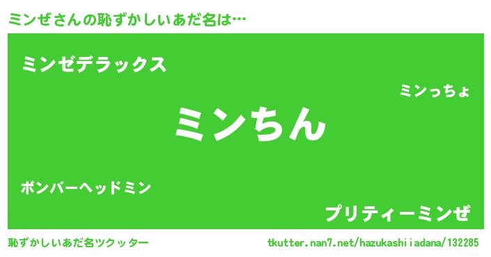| ヘコむあだ名 | 『ミンぜ(苦笑)』『ミンにゅー』 |