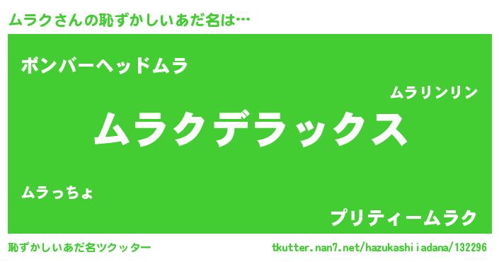 | 意味不明あだ名 | 『住所不定無職ムラク(10歳)』『自称ムラク』 |