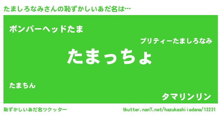 | 男性向けラノベタイトル風あだ名 | 『やはりたましろなみの青春ラブコメはまちがっている 』 |