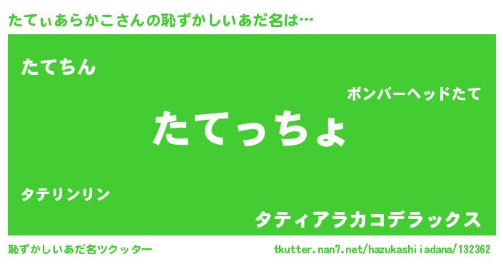 | 可愛いあだ名 | 『たてちー』『たてぃあらかこママ』 |