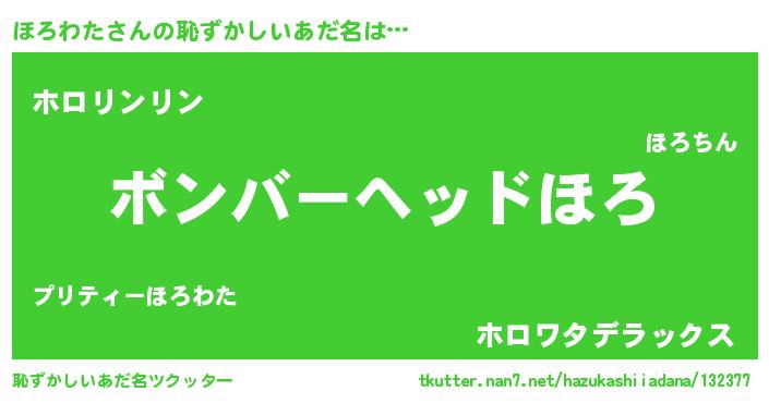 | ヘコむあだ名 | 『ほろを』『ほろわた(遠い目)』 |