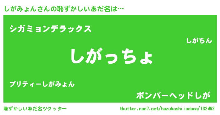 | 男性向けラノベタイトル風あだ名 | 『しがみょん~年齢イコール彼女いない歴の魔法使い~』 |