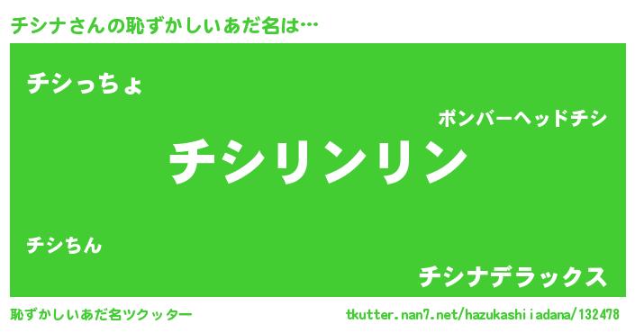 | 意味不明あだ名 | 『とにかく怪しいチシナ』『自称チシナ』 |