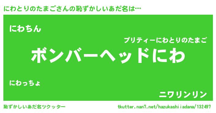 | 可愛いあだ名 | 『にわちゅっちゅ』『にわぷりん』 |