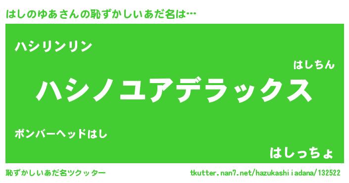 | 意味不明あだ名 | 『自称はしのゆあ』『永久保存はしのゆあ』 |