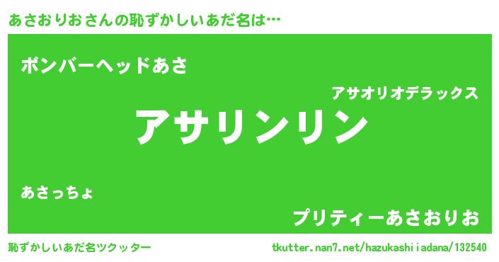| 意味不明あだ名 | 『とにかく怪しいあさおりお』 |