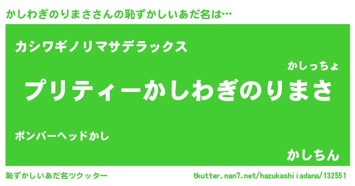 | ヘコむあだ名 | 『かしにー』『かしわぎのりまさ(爆)』 |