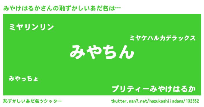 | 可愛いあだ名 | 『みーみん』『みやけはるかママ』 |