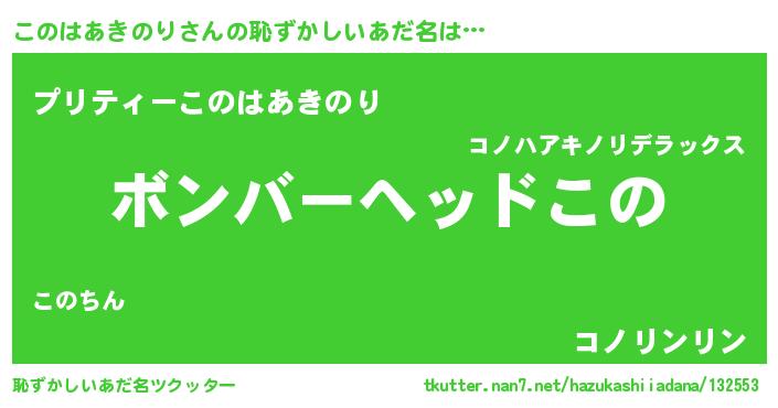 | 男性向けラノベタイトル風あだ名 | 『このはあきのりに滅ぼされるだけの簡単なお仕事です』 |