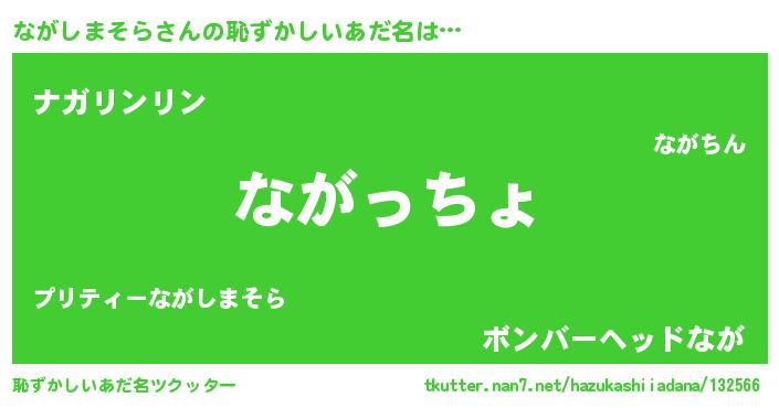 | 男性向けラノベタイトル風あだ名 | 『魔弾の王とながしまそら』 |