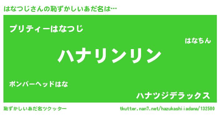 | 男性向けラノベタイトル風あだ名 | 『はなつじ~年齢イコール彼女いない歴の魔法使い~』 |