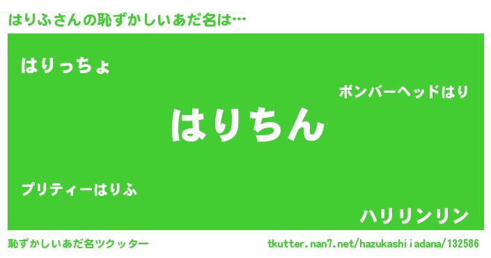 | ヘコむあだ名 | 『はりふ(小並感)』『酢こんぶ』 |