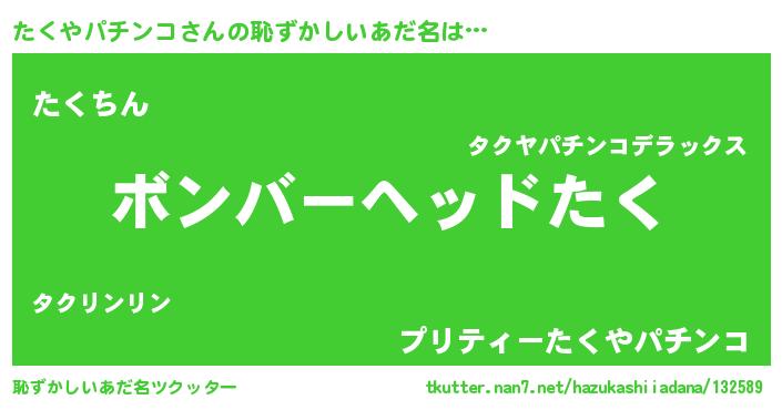 | ヒーロー風カッコイイあだ名 | 『仮面タクダー』『ネオタクヤパチンコ』 |
