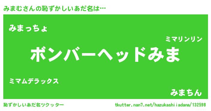 | ヘコむあだ名 | 『豆乳』『みまむ(苦笑)』『みま太郎』 |