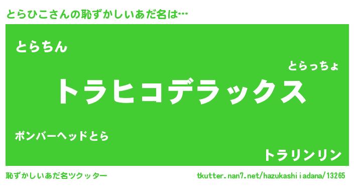 | ヘコむあだ名 | 『とらひこ(笑)』『とらぷりん』 |
