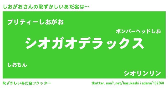 | 男性向けラノベタイトル風あだ名 | 『転生したらしおがおだった件』 |