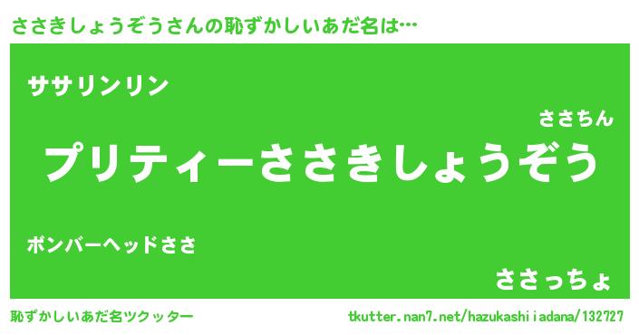 | 男性向けラノベタイトル風あだ名 | 『ササキショウゾウスレイヤー』 |