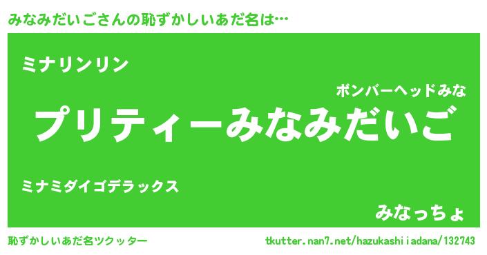 | ヒーロー風カッコイイあだ名 | 『スーパーミナミダイゴ』『天弓騎士ミナ』 |