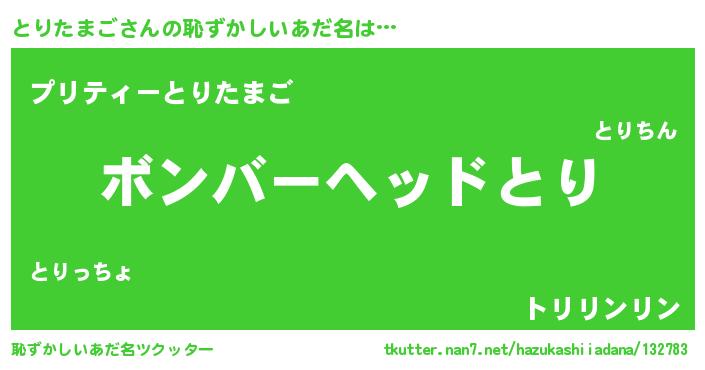 | ヒーロー風カッコイイあだ名 | 『友情の使者とりたまご』『仮面トリダー』 |