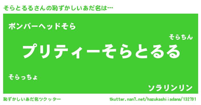 | 男性向けラノベタイトル風あだ名 | 『転生したらそらとるるだった件』 |