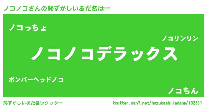 | 女子向けラノベタイトル風あだ名 | 『闇のノコノコ』『ノコノコの雑貨屋さん』 |