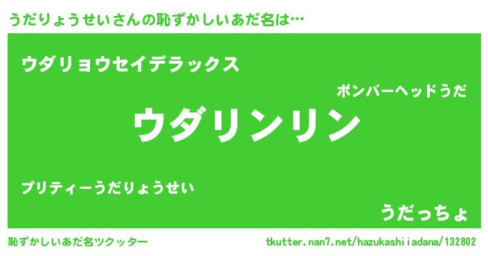 | 男性向けラノベタイトル風あだ名 | 『うだりょうせいの嫁は女の子じゃないと思った?』 |