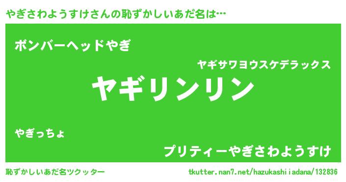 意味不明あだ名 | 『とにかく怪しいやぎさわようすけ』 |