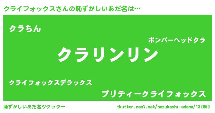 | ヘコむあだ名 | 『クラっちょ』『クライフォックス(苦笑)』 |