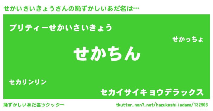 | ヘコむあだ名 | 『せかいさいきょう(遠い目)』『せかにゅー』 |