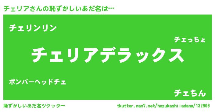 | ヒーロー風カッコイイあだ名 | 『ウルトラ戦士チェリア』『暗黒騎士チェ』 |
