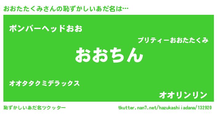 | 意味不明あだ名 | 『永久保存おおたたくみ』 |