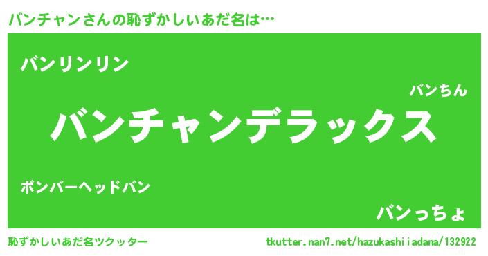 | ヘコむあだ名 | 『バン太郎』『レバニラ』 |