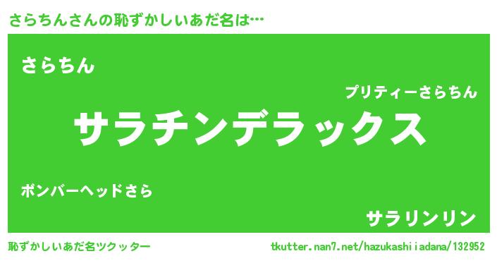 | ヘコむあだ名 | 『さらちん(苦笑)』『さらっ子』 |