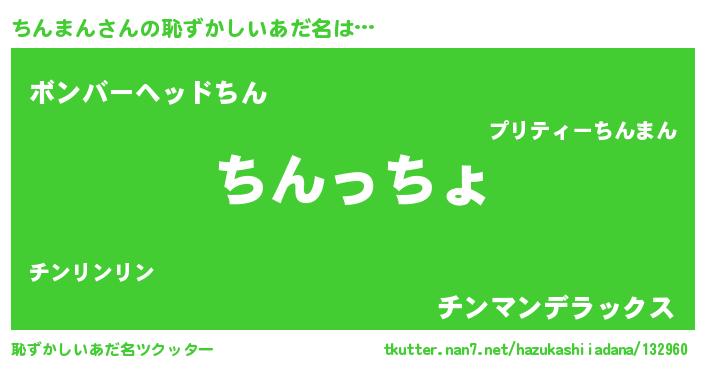 | ヒーロー風カッコイイあだ名 | 『ウルトラちんまんマン』『黄金騎士チン』 |